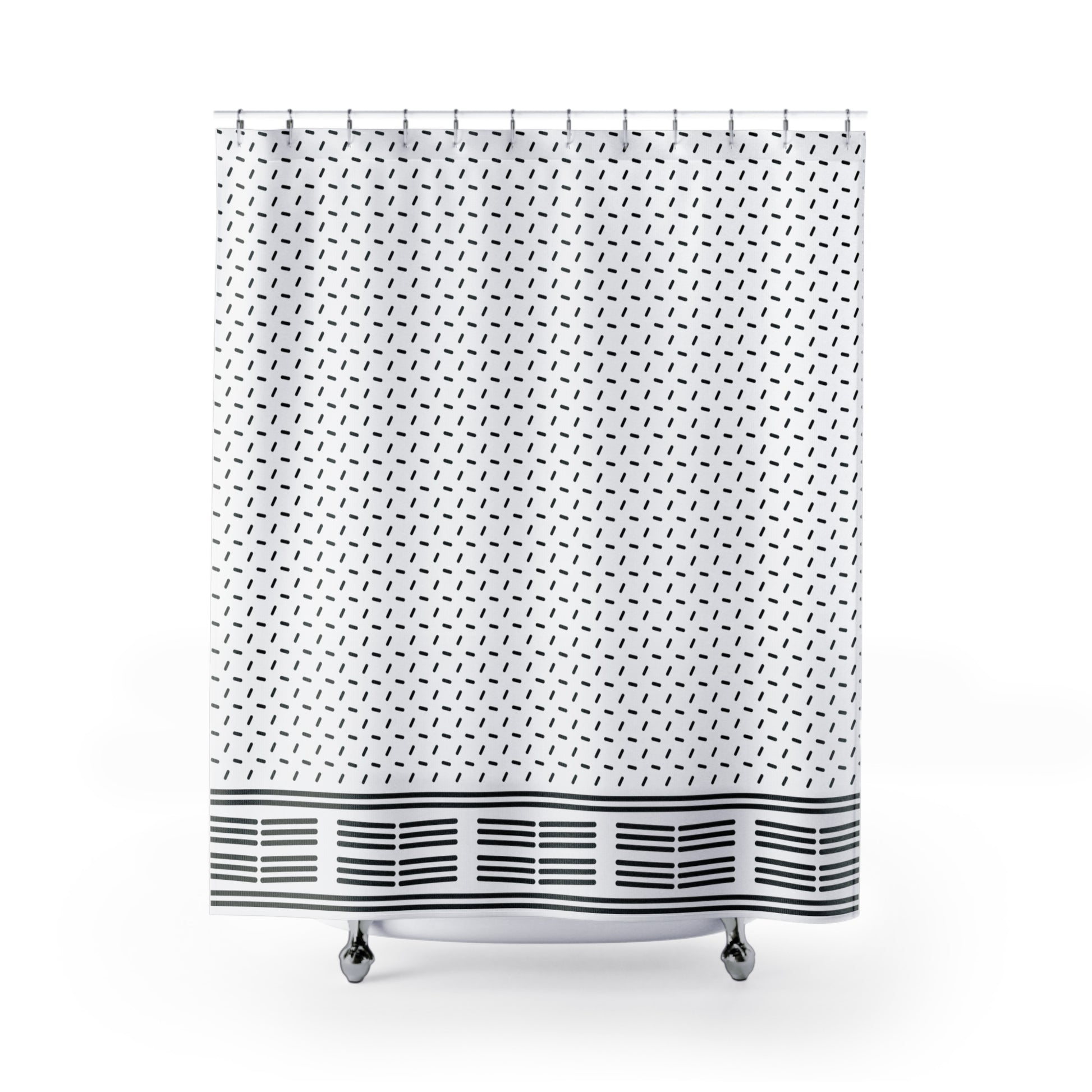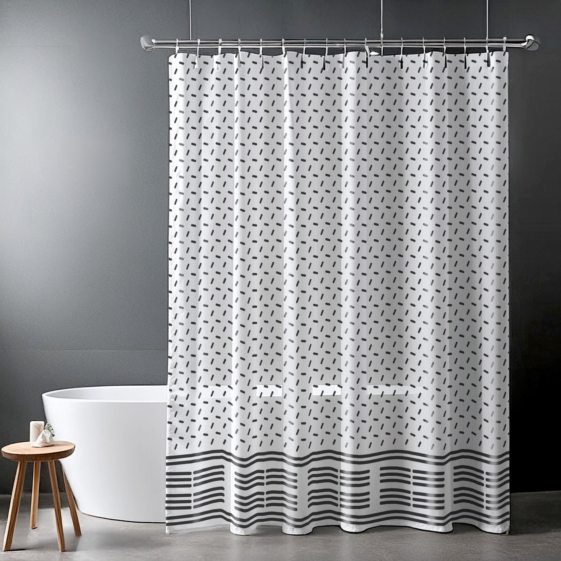 This shower curtain is here to add an original touch to any bathroom. Made with highly durable polyester, this curtain stays like new for a long time.